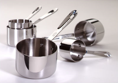 Measuring cup set crafted to look like mini sauce pans the measuring cup set is made of high quality stainless steel with a polished exterior and brushed interior finish.